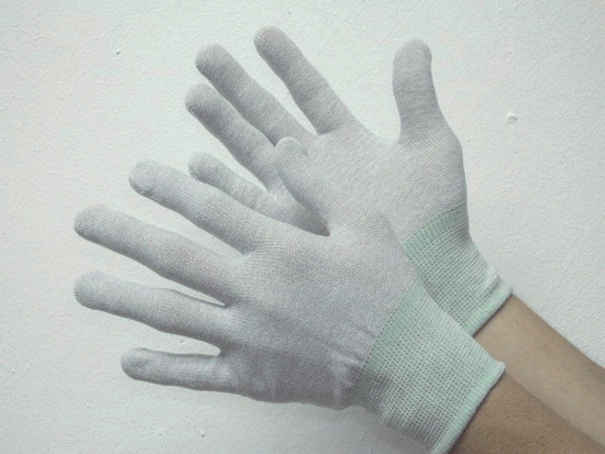 Šedé nylonové pletené antistatické rukavice bez povrchové úpravy, jemný povrch pro dokonalou hmatovou citlivost, pružné a tvarově přizpůsobivé, zesílená manžeta pro větší pevnost a snadné navlékání.